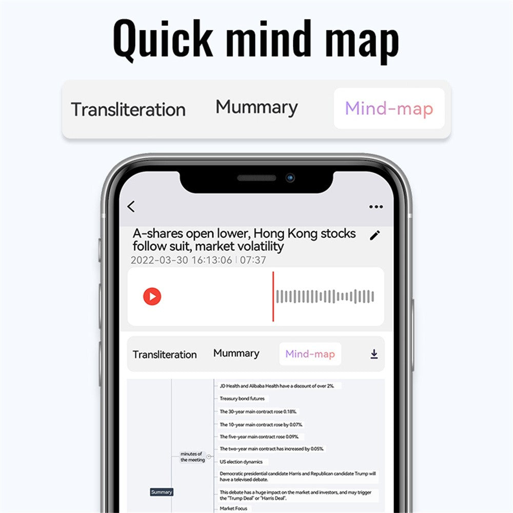 (One-Touch Recording )Effortless recording with a single button featuring two modes for quick and convenient audio capture.