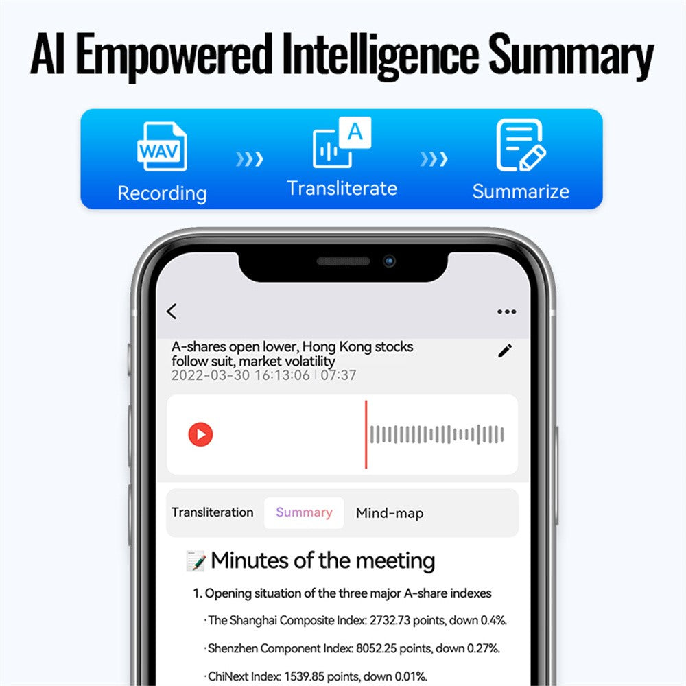 (AI-Powered Transcription )Connects to AIREC-APP via Bluetooth-compatible, offering real-time transcription in 188 languages.