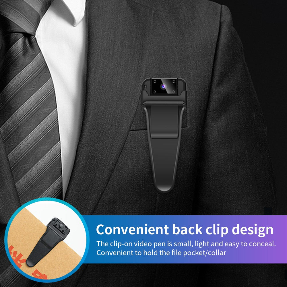 The clip-on video pen is small, light and easy to conceal. Convenient to hold the file pocket/collar