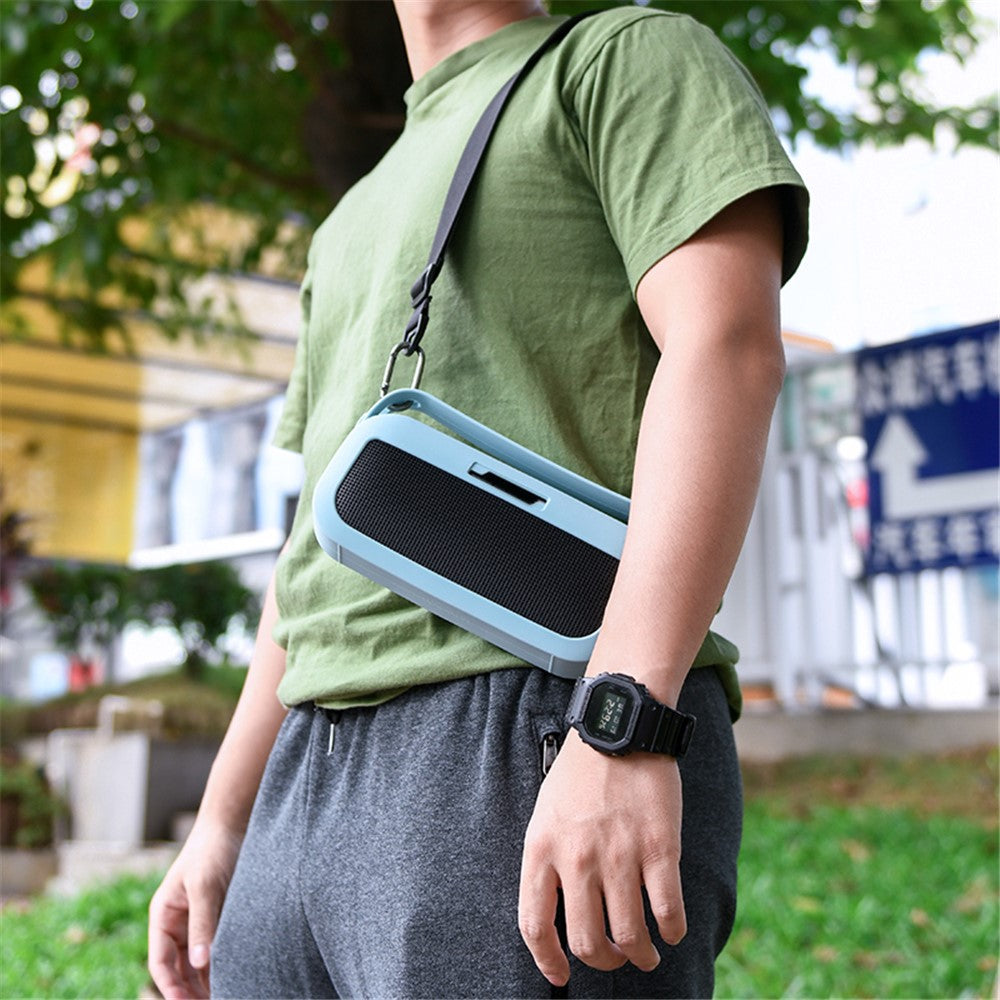 For Bose SoundLink Flex Case Portable Speaker Silicone Sleeve Cover with Handle Strap and Shoulder Strap - Blue