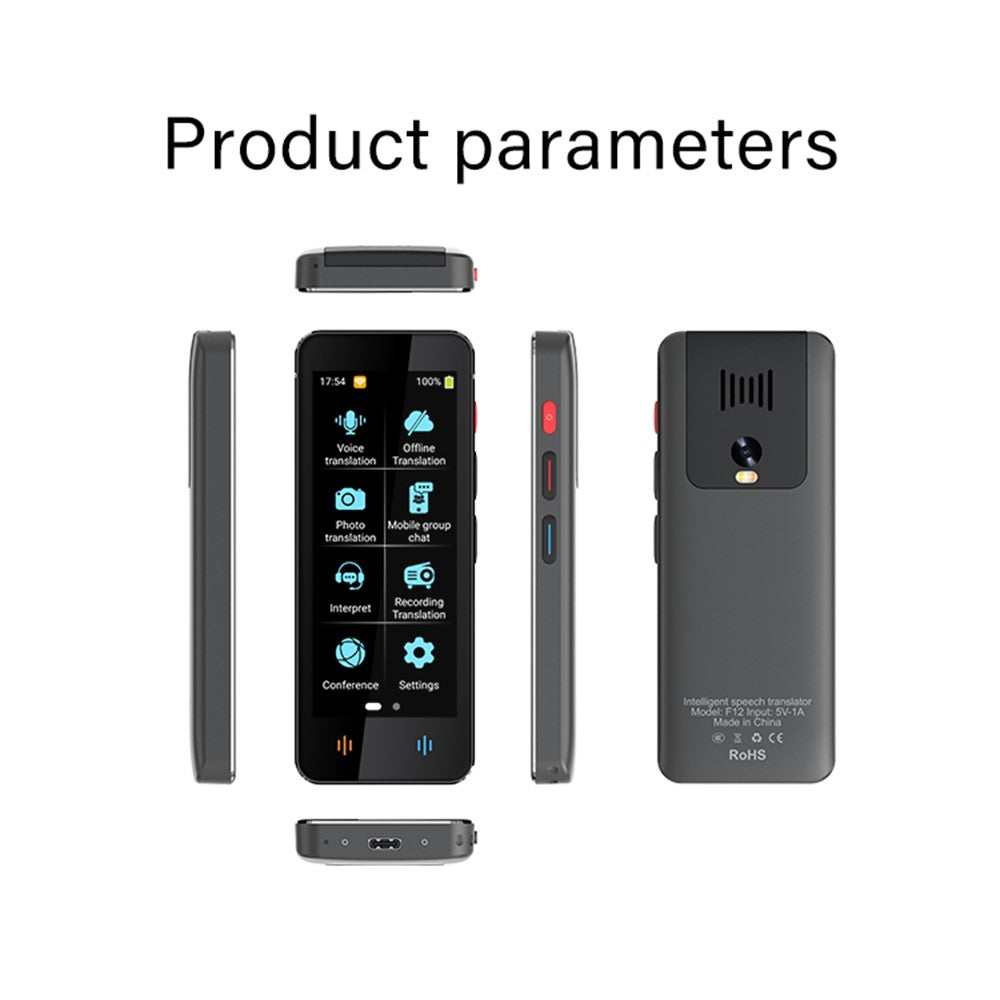 • (Intelligent Voice Translation )F12 smart translator device facilitates seamless communication for international travel, foreign trade, and language learning.