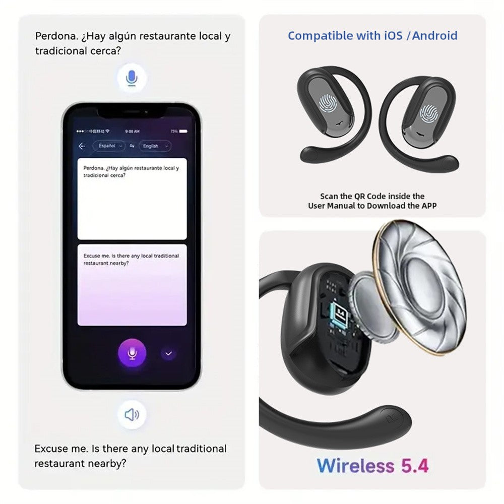 T20 Bluetooth-Compatible Music Earphones Noise Cancelling Multi Language Translation Headphones - Black