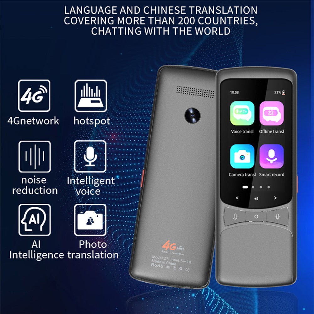 (4G Connectivity )Equipped with 4G LTE capabilities for seamless translation services worldwide during your travels.