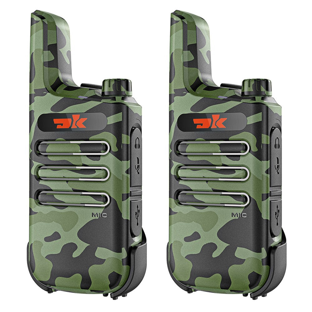DK F1 2Pcs Portable Mini Handheld Interphone UHF 400-480MHZ Walkie Talkie - Camouflage Green / US Plug