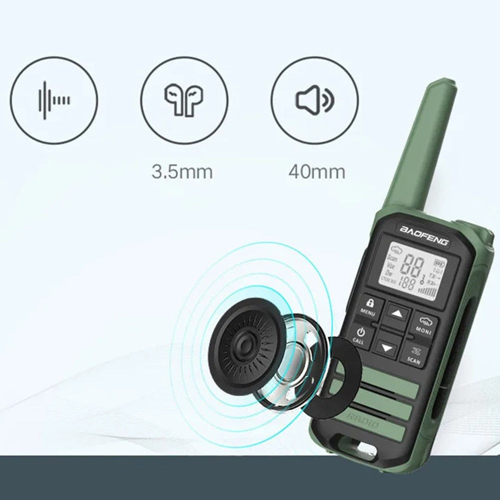 1500mAh Long-Lasting Battery: Powered by a 1500mAh battery, this walkie-talkie offers long use time, for outdoor adventures
