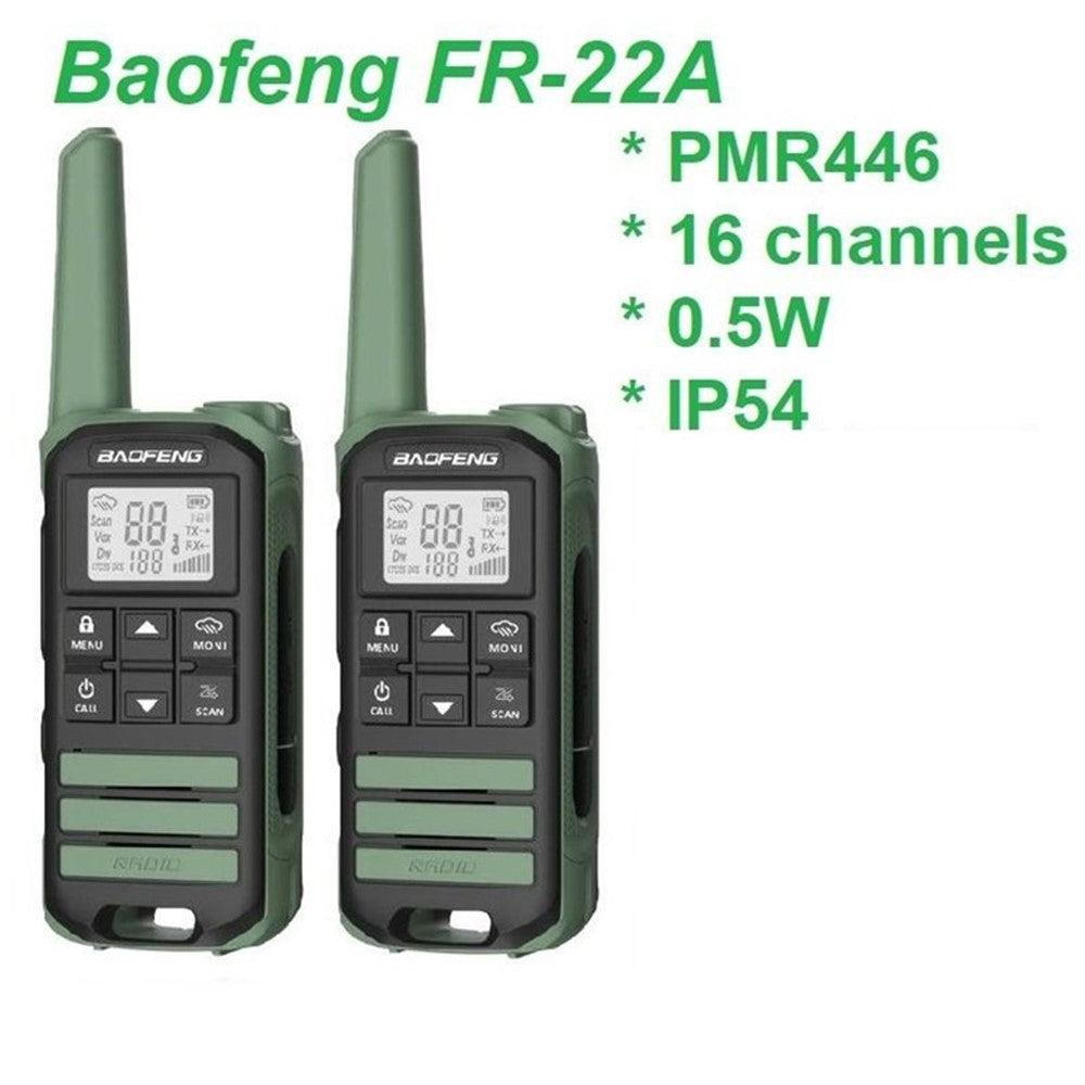 FR-22A 2Pcs Outdoor Handheld Interphone with Screen UHF FRS462 PMR446MHZ Walkie Talkie - Green / US Plug