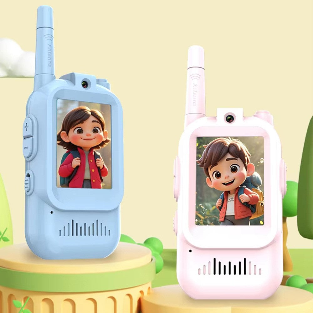 JK200 1 Pair 2.0 Inch Screen Video Walkie Talkie Set for Children 150-500m Range Communication - Pink+Pink