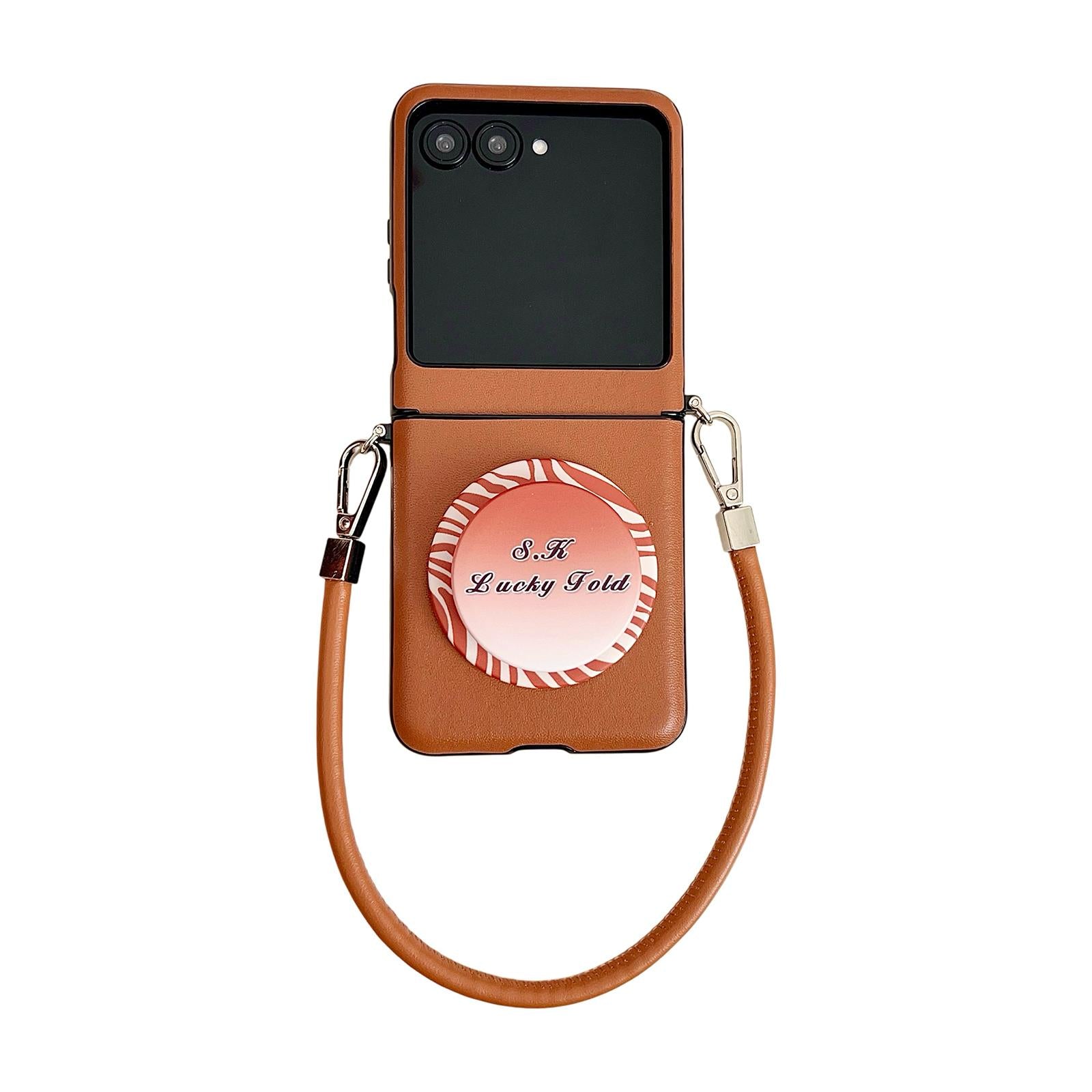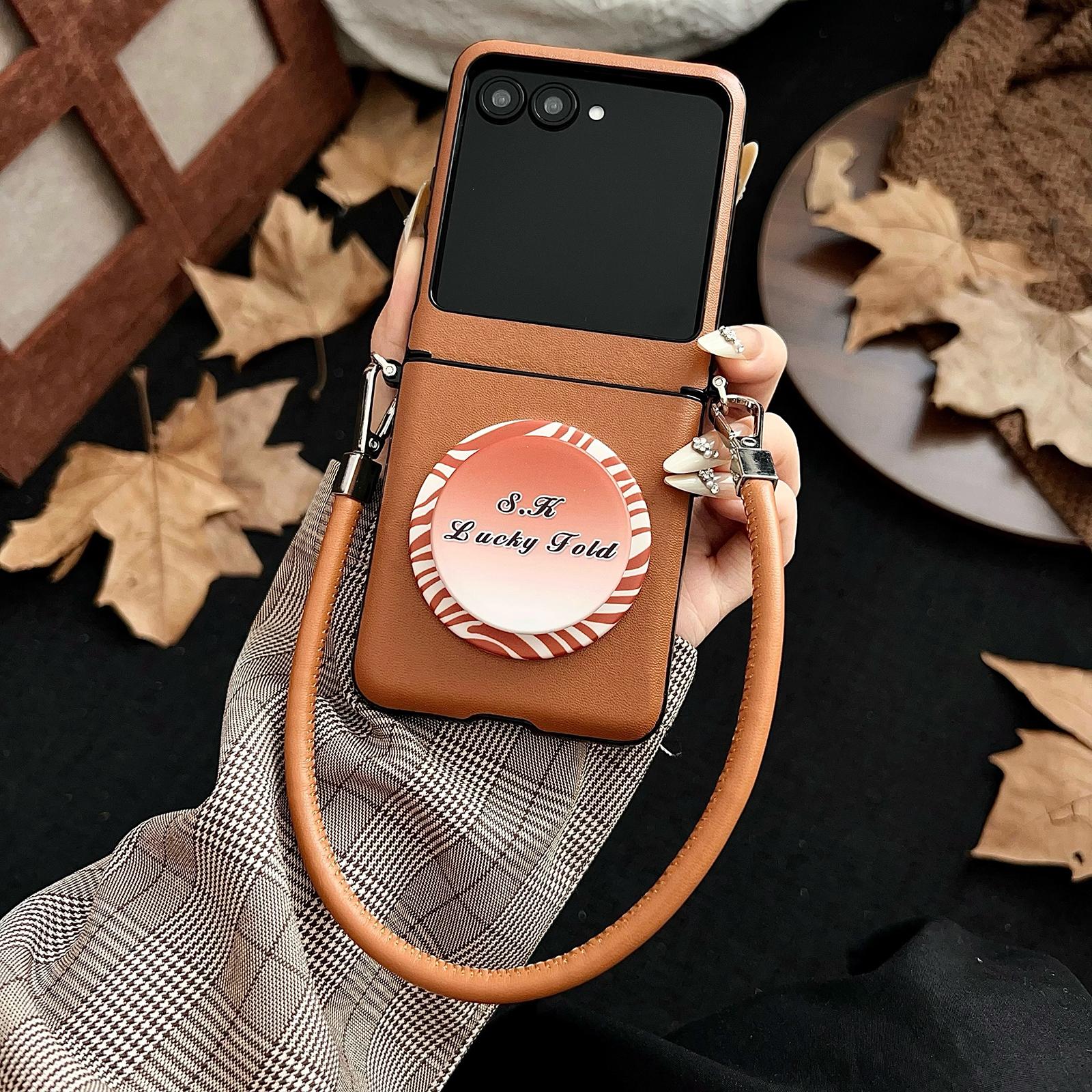 For Motorola Razr 60 Pro Side Buckle MagSafe Magnetic PC Stand Phone Case with Lanyard(Brown)