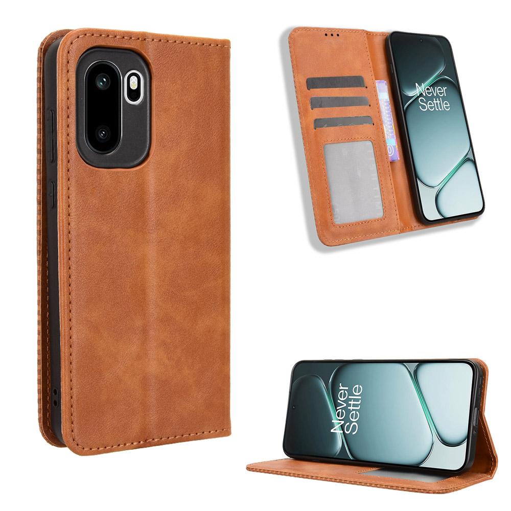 For OnePlus Ace 6 / Ace 6T / 15R Magnetic Buckle Retro Texture Leather Phone Case(Brown)