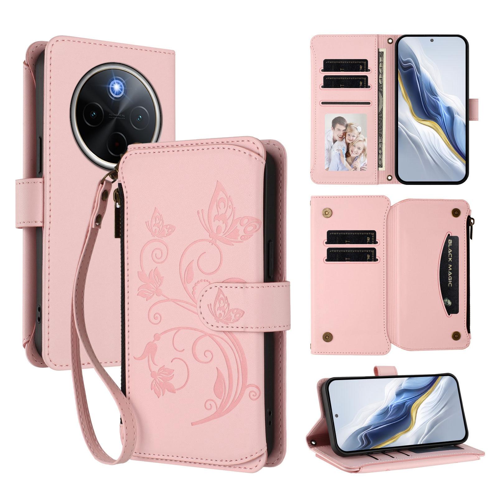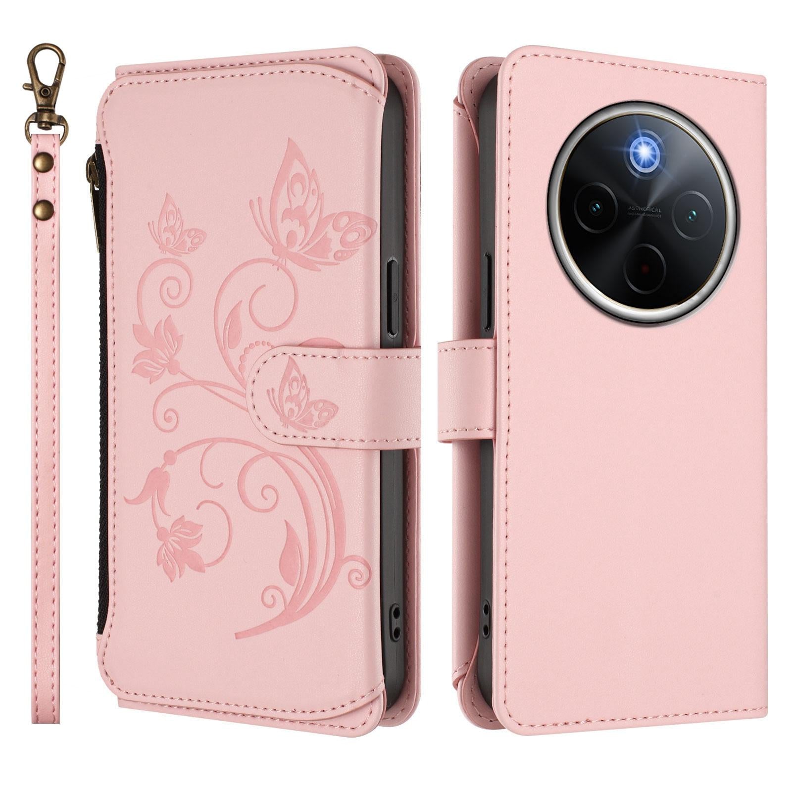 For vivo Y300 Pro+ 5G / iQOO Z10 5G Butterfly Love Flower Multi-card Zipper Wallet Leather Phone Case(Pink)